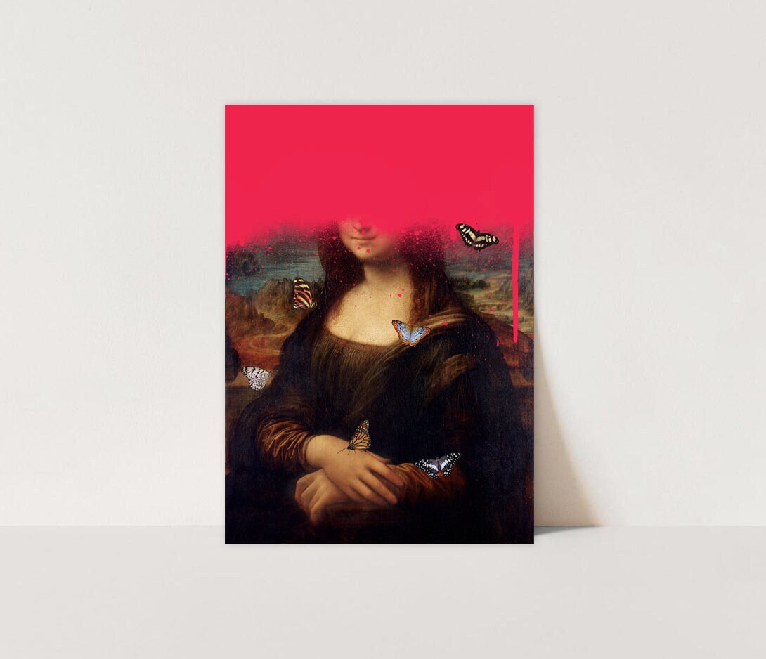 Mona Lisa With Butterflies And Pink Spray Paint Art Print Etsy Uk