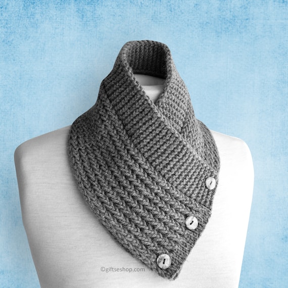 Buttoned Scarf Cowl Knitting Pattern Men Women Knitted Cowl Etsy Uk